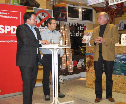 Martin Gerster MdB, Fabian Rothfuss und Fritz Buschle MdL (von links nach rechts)Tuttlingen - „Die rechte Szene in Baden-Württemberg“ stand thematisch im Mittelpunkt eines Vortrags, zu dem der SPD-Ortsverein Tuttlingen gemeinsam mit dem Landtagsabgeordneten Fritz Buschle MdL für den 9. Dezember in Stiefels Buchladen eingeladen hatte. Als sachkundigen Experten konnte Moderator Fabian Rothfuss den Biberacher SPD-Bundestagsabgeordneten Martin Gerster begrüßen, der sich seit mehreren Jahren intensiv mit dem Spektrum der extremen Rechten beschäftigt.
