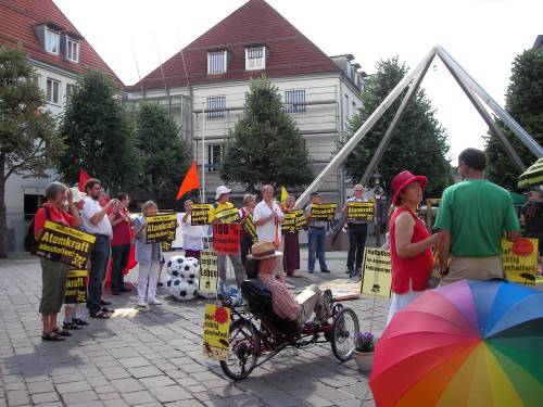Unter dem Motto "Mal richtig abschalten" trafen sich rund 70 Bürgerinnen und Bürger am vergangenen Samstag auf dem Tuttlinger Marktplatz. Ziel der deutschlandweit durchgeführten Aktion war es, gegen die geplante Laufzeitverlängerung der Atomkraftwerke zu demonstrieren. Mit viel Krach und Sprechchören, wie "Volker Kauder, Abschalten!" machten die Teilnehmerinnen und Teilnehmer die Passanten auf ihre Forderung aufmerksam. Auch Jusos und SPDler waren bei der kreativen Protestaktion vertreten. Für die Durchführung verantwortlich war die attac-Gruppe Tuttlingen.